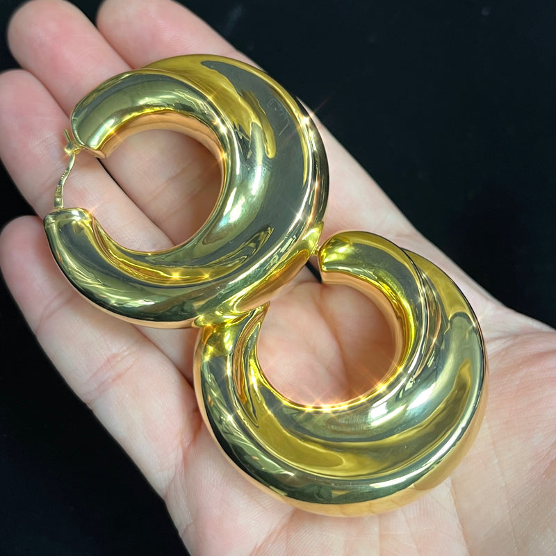 Nice Sleek Swirled 10K Yellow Gold Puffy Hoop Earrings