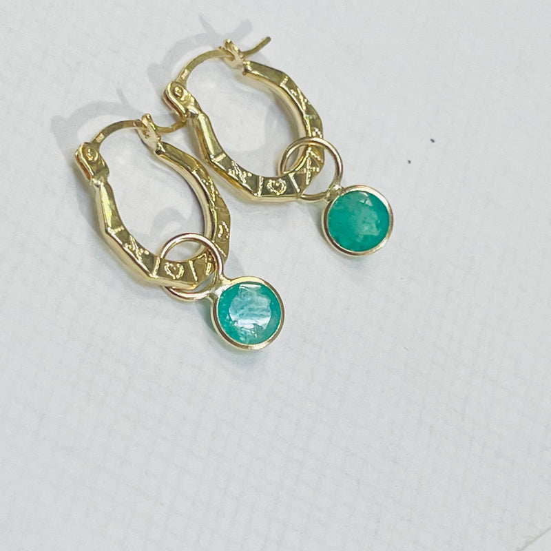 14K Yellow Gold Round Emerald Earring Charm Pair