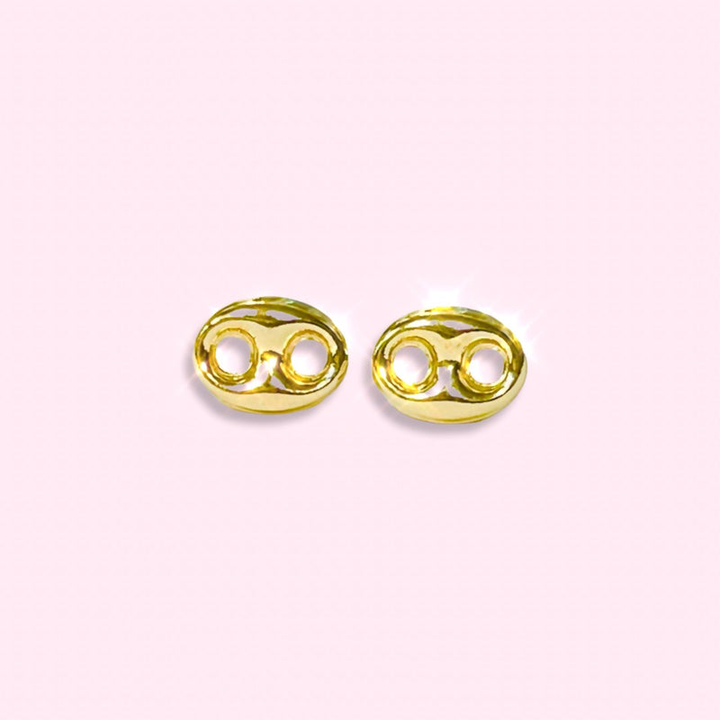 14K Yellow Puffy Link Stud Earrings 9x6mm