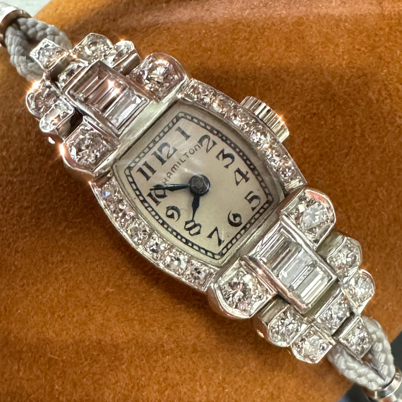 14mm Ladies 1CTW VVS Diamond Hamilton Art Deco Antique Cocktail Platinum Watch