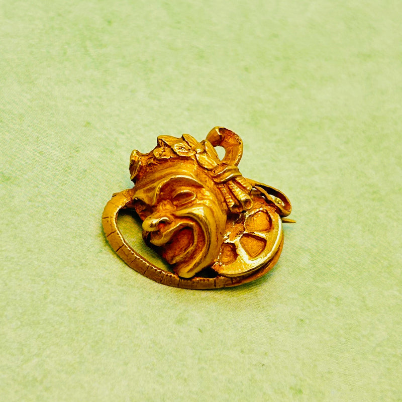 18K Yellow Gold Solid Mask Pin Brooch