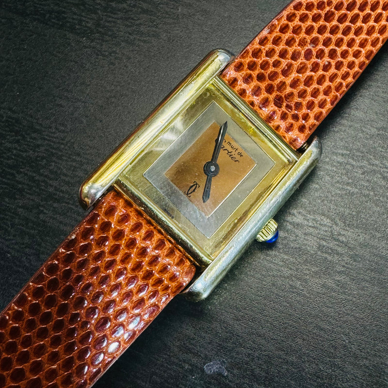 Discover the exquisite 23mm Cartier Must De Cartier Vintage. Indulge in luxury and sophistication with this timeless piece, boasting a stunning Tritone Gold Face and 18K Plated finish.