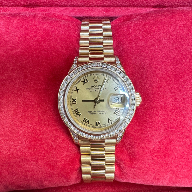 26mm Ladies 18K Gold President DateJust Watch 1996 Diamond Bezel