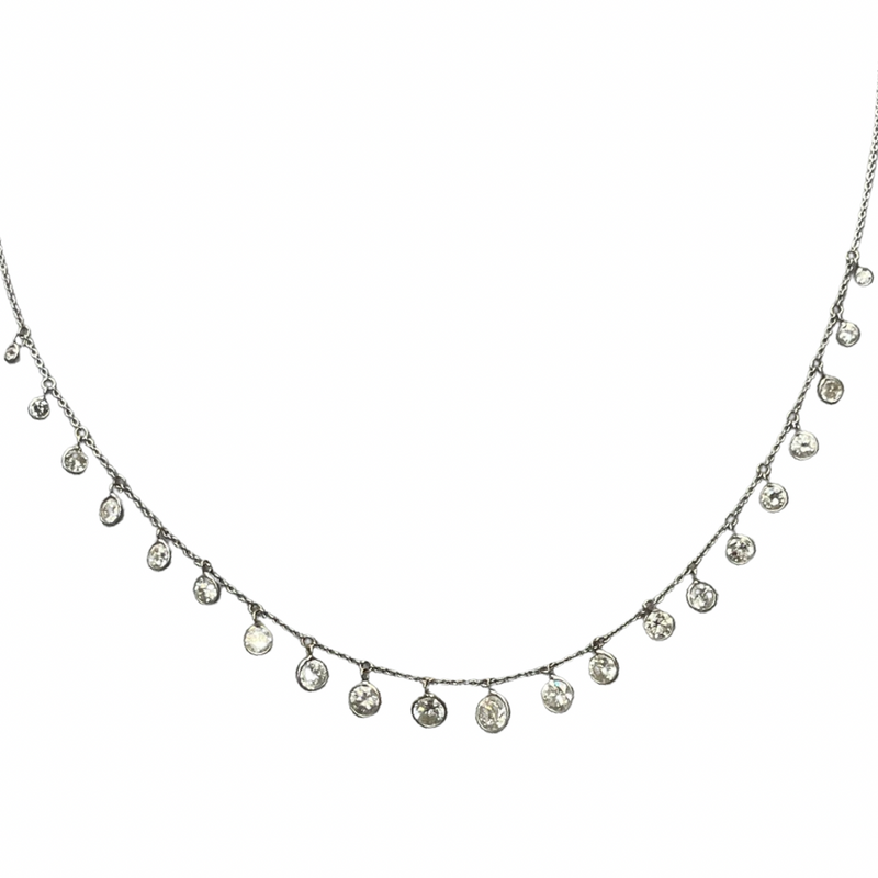 3.92CTW Round Diamond Dangle Fringe Necklace 14k White Gold