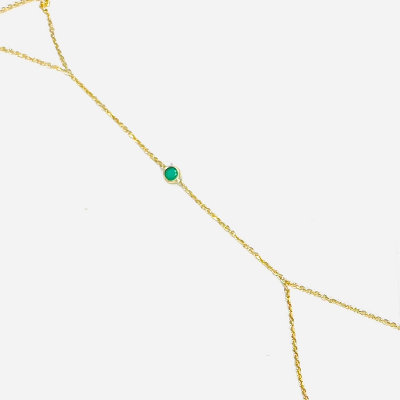 4mm Round Colombian Emerald Handchain 14k Yellow Gold