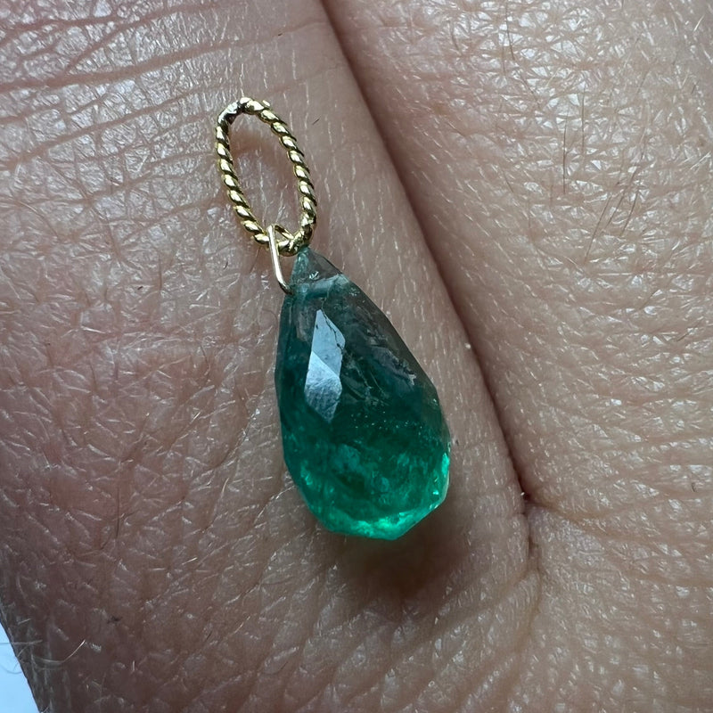 Handmade 1.3CT Briolette Emerald charm Pendant 9x5.49x3.96mm