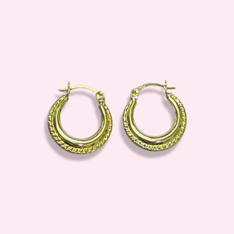 .65” 10K Yellow Gold Tapered Puffed Ridged Hoop Earrings