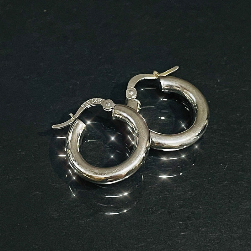 .65” 3mm 14K White Gold Sleek Hoop Earrings