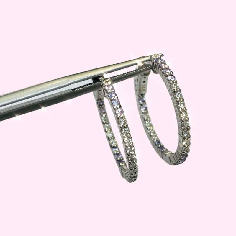 .90” Diamond and Purple Ombre Sapphire 14K White Gold Inside Outside Hoop Earrin