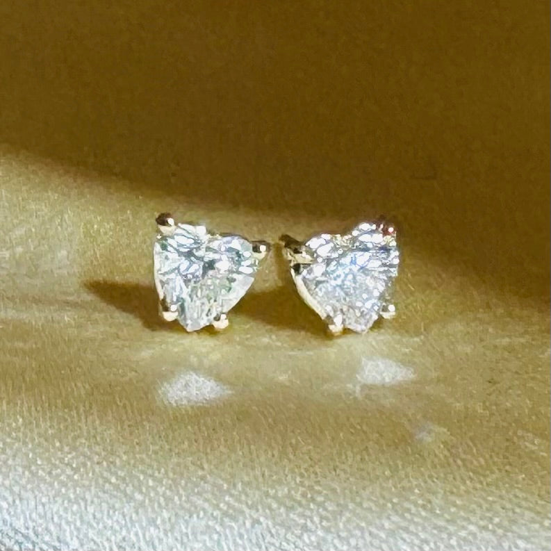 .92CT Natural Heart Diamond Stud Earrings in 14K  Yellow Gold