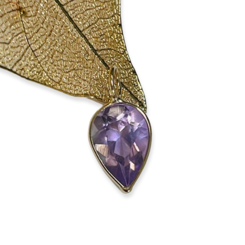 1.7CT Lavendar Amethyst Pear 14K Yellow Gold Pendant Charm 15x8mm