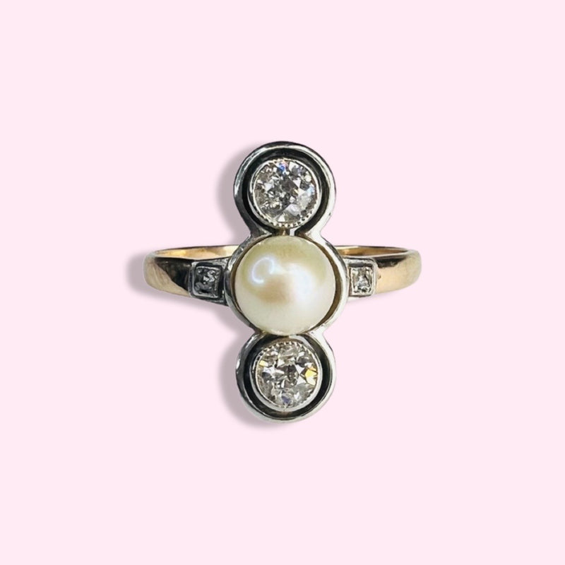 Antique 14K Yellow Gold .40ctw Diamond & Pearl Ring Size 5