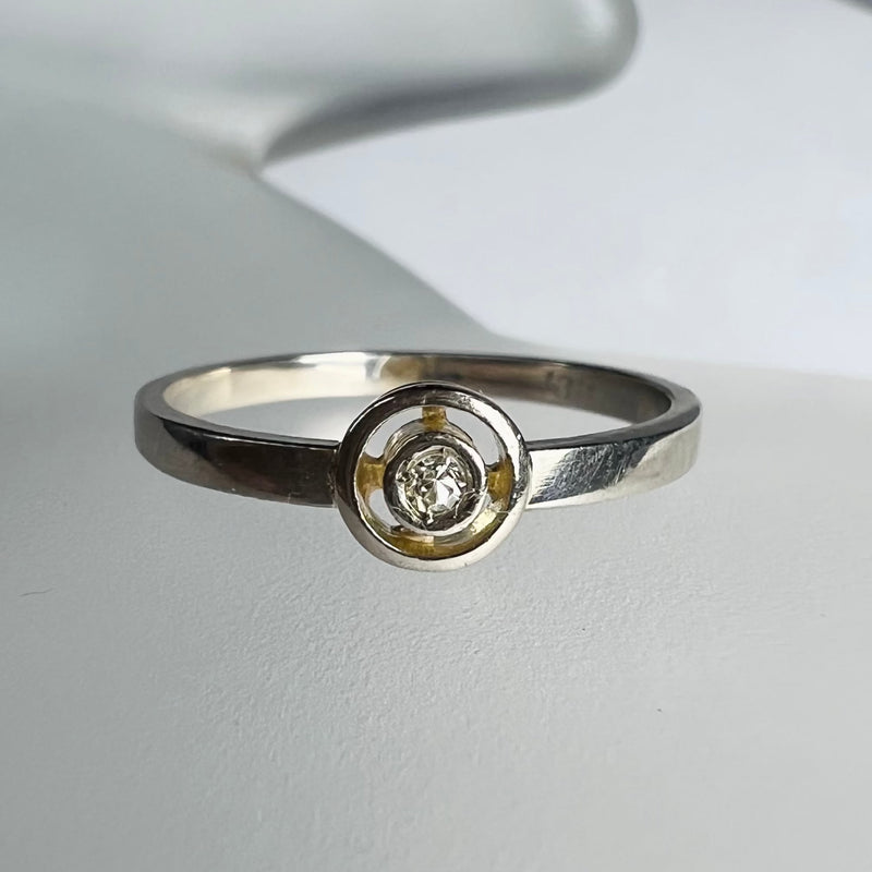 Solid 18K White Gold Bezel Diamond Engagement Ring Band Size 7.5 Sale price$335.00