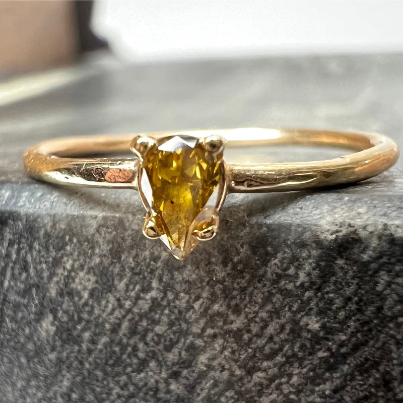 Solid 14K Yellow Gold Yellow Pear Diamond Dainty Ring Band Size 6.50