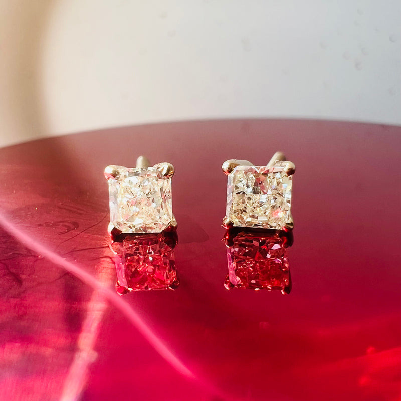 14K Yellow Gold Square Diamond Earring Studs Sale price$565.00