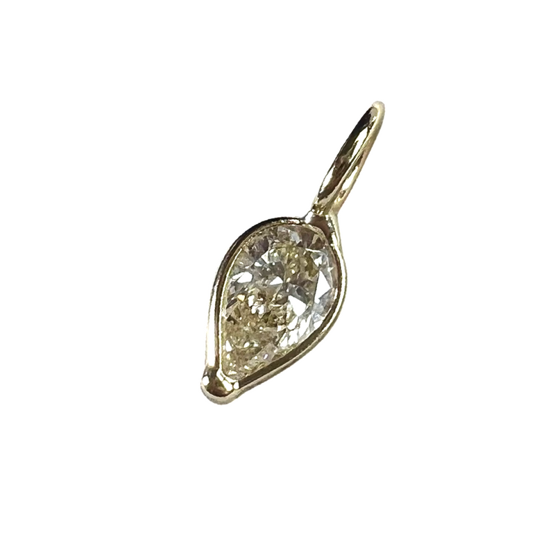 Featuring a natural and untreated upside down pear diamond bezel in solid 14K yellow gold.