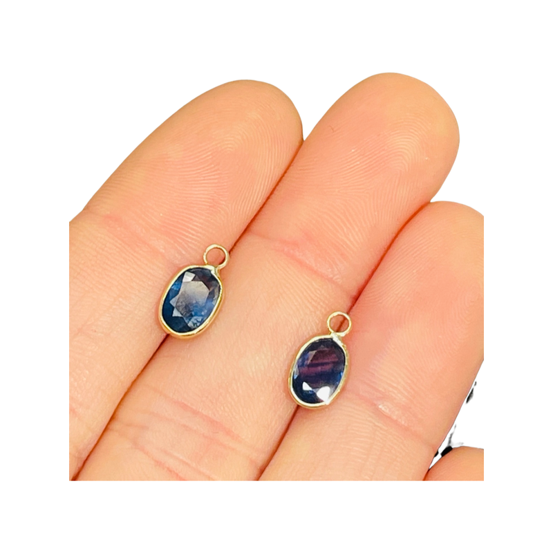 14K Yellow Gold Natural Oval Sapphire Hoop Earring Charms
