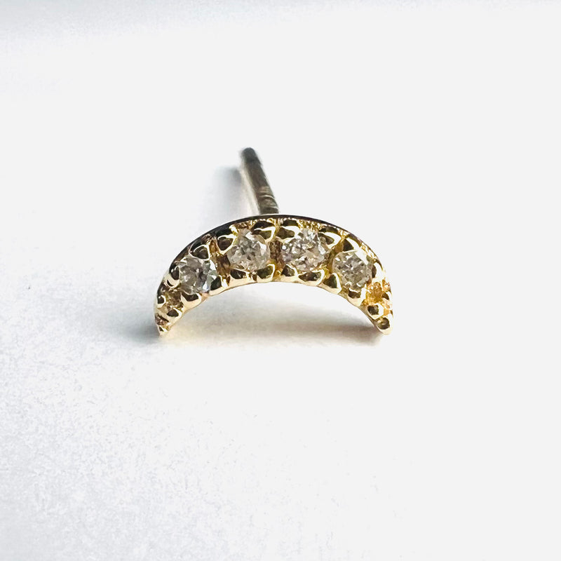 14K Yellow Gold Crescent Moon Diamond Single Earring Stud 6x3mm
