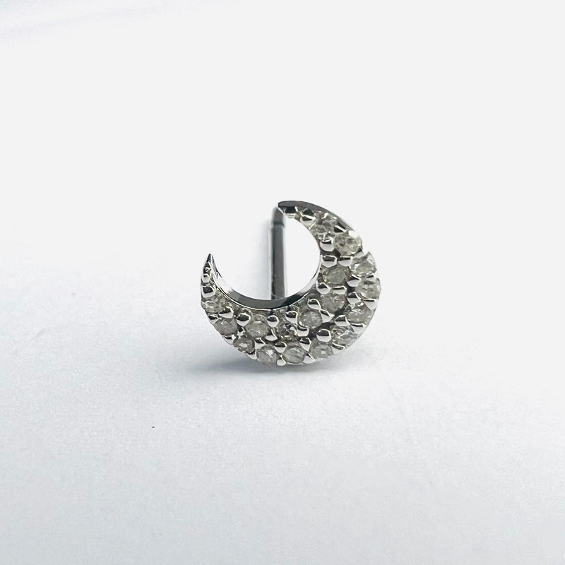 14k White Gold Pave Diamond Moon Single Earring Stud 6x5mm