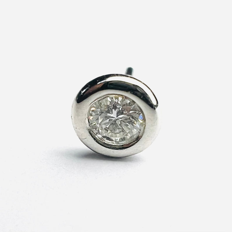 .11CT Natural Diamond 14K White Gold Bezel Single Stud Earrings 5mm