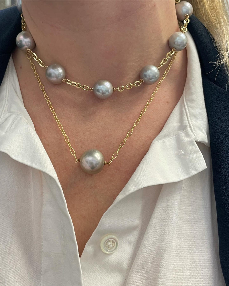 Freshwater Akoya Pearl Solid 14K Yellow Gold Station Necklace Sale price$1,449.99