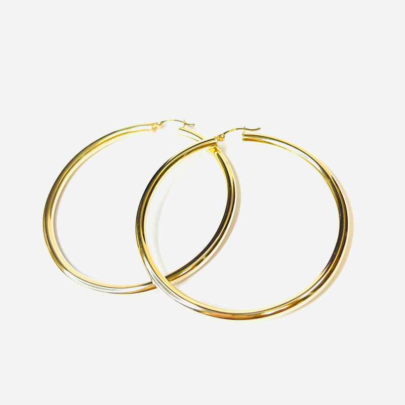 Beautiful New 14K Solid Yellow Gold Hoop Earrings 2.6"