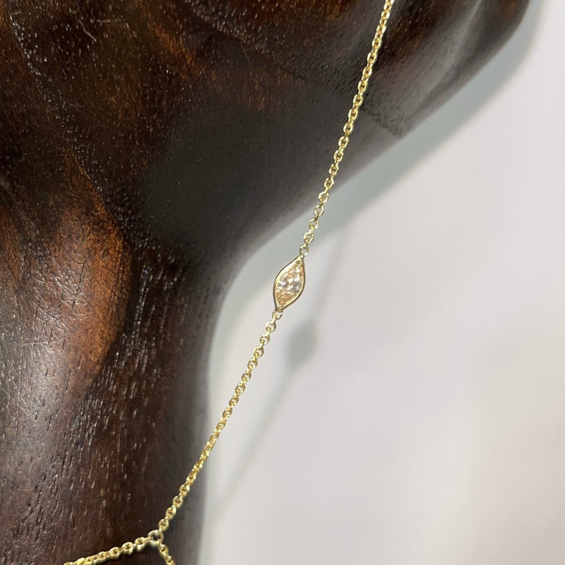 Marquise Diamond Hand Chain in Solid 14K Yellow Gold