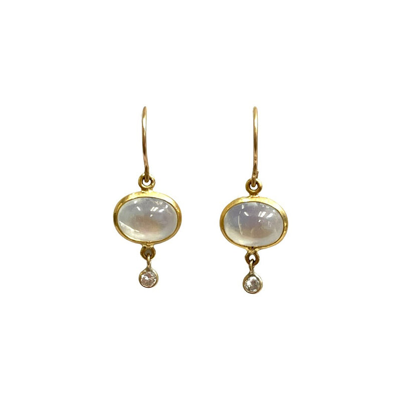 Diamond Moonstone Earrings in solid 14k Yellow Gold .9" Long Sale price$550.00