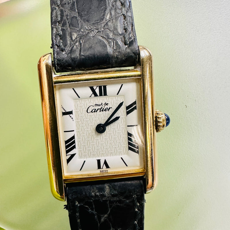 Must de Cartier Tank White Face and Black Strap Watch 23mm