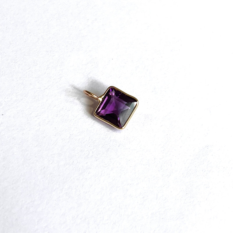 Natural and untreated square amethyst in 14K yellow gold