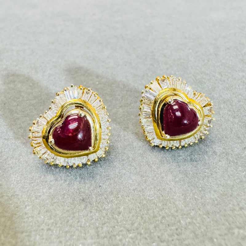 Natural Baguette Diamond and Ruby Cabochon 18K Yellow Gold Stud Earrings Convertible with Jackets Sale price$1,895.00