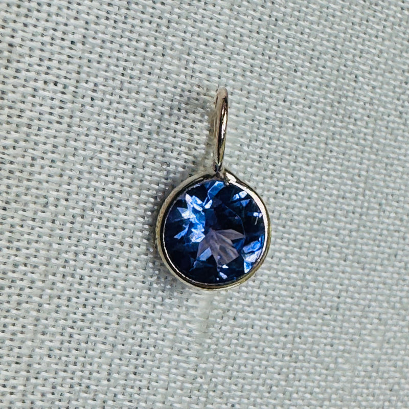 Natural Round Tanzanite 14K Gem Charm Pendant