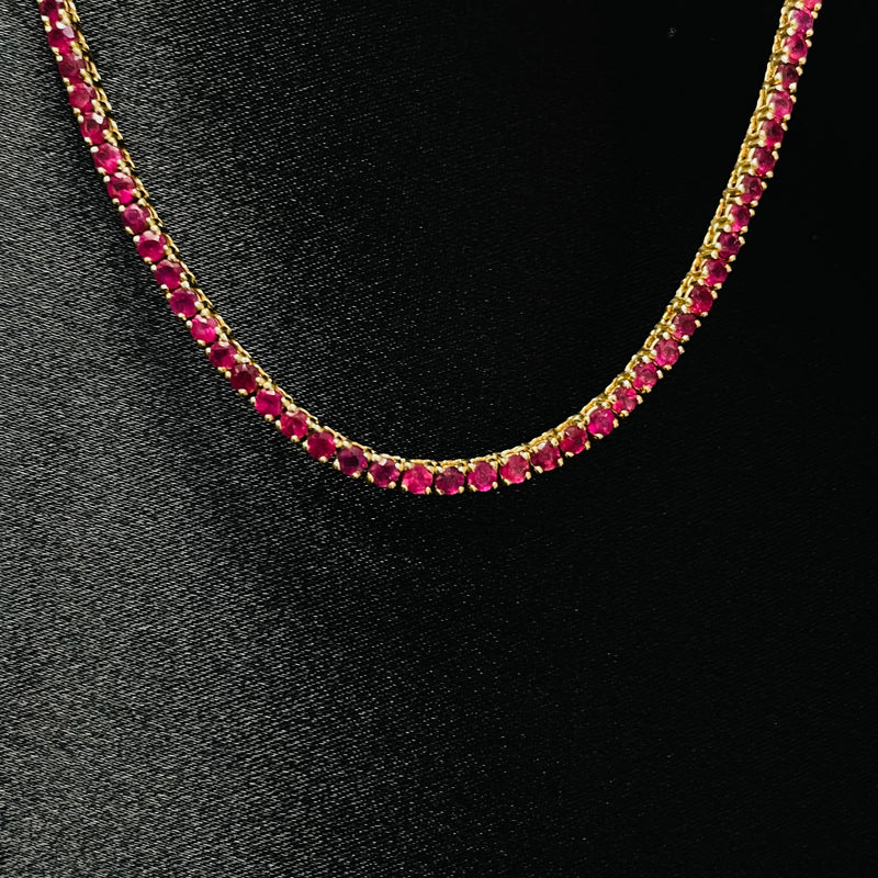 Natural Ruby Tennis Necklace 14K Yellow Gold