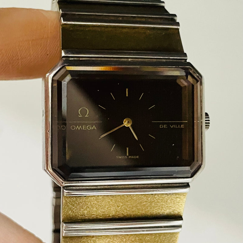 Omega De Ville Sterling Silver Gold Vermeil 1970s Vintage Unisex Wrist Watch New