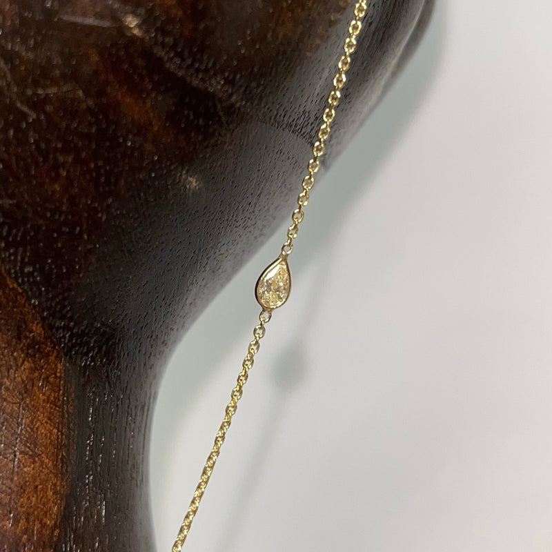Yellow Pear Diamond Hand Chain in Solid 14K Yellow Gold