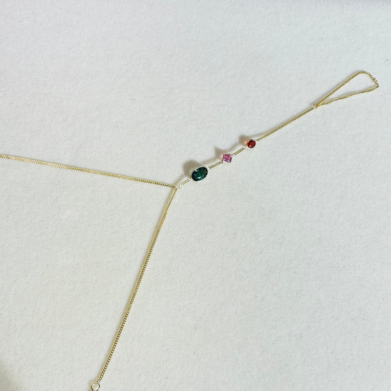 Pink and Green Tourmaline Orange Sapphire 14K Yellow Gold Handchain Sale price$645.00
