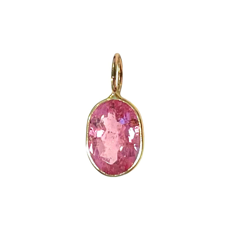 Natural Pink Oval Tourmaline 14K Yellow Gold Pendant Charm 15x7mm