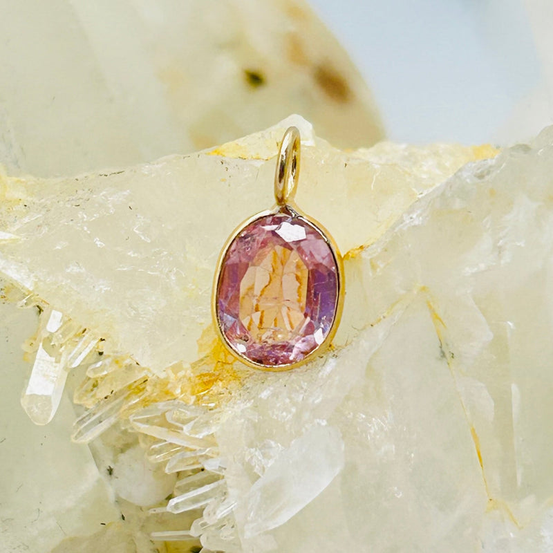 Pretty Pink Imperial Topaz and Solid 14K yellow Gold Gemstone Pendant