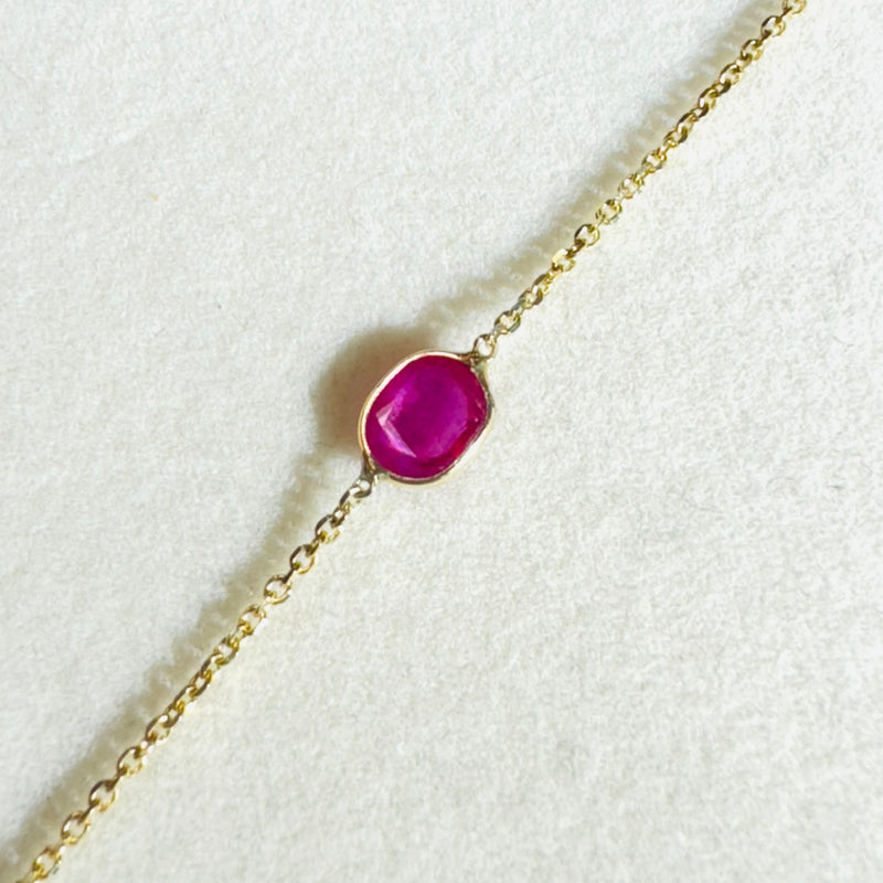 Oval Ruby Hand Chain Bracelet in Solid 14K Yellow Gold Sale price$495.00