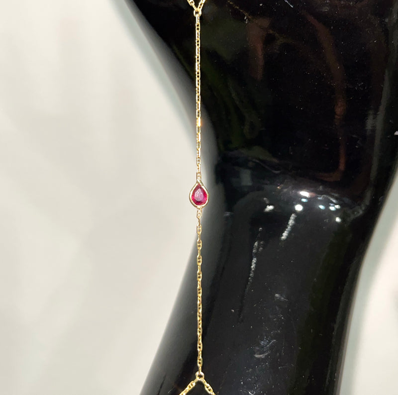 Ruby Hand Chain Bracelet in solid 14k Yellow Gold 5x3.5mm