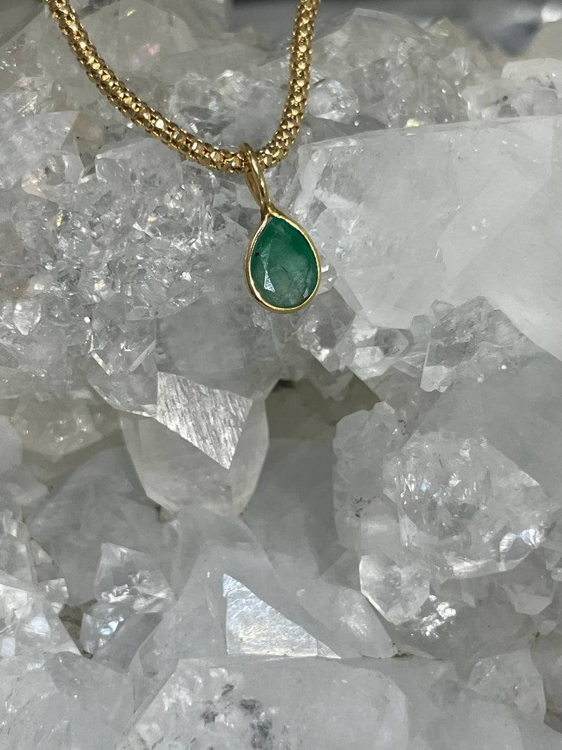Featuring a gorgeous and vibrant natural emerald with a pear cut shape