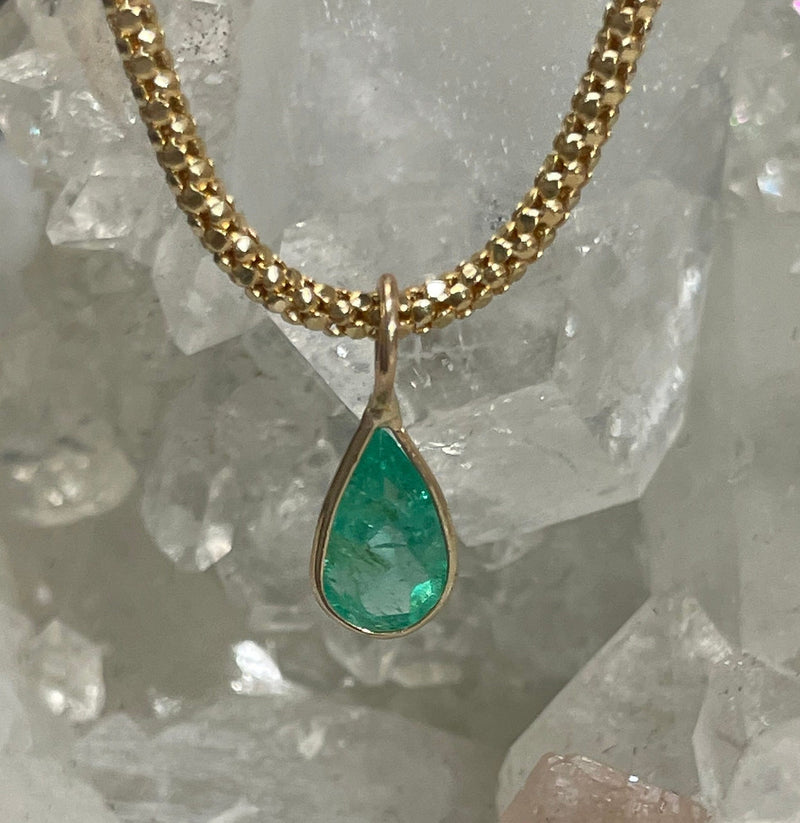 Shimmering! .65CT Natural Colombian Emerald 14K Yellow Gold Bezeled Charm Pendant OOAK 8x5mm