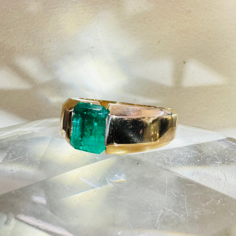 Solid 18K Yellow Gold Emerald Ring Size 8.25