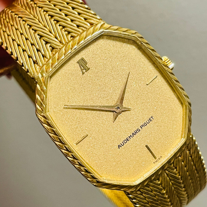 Vintage AP Audemars Piguet Solid 18K Yellow Gold Basket Weave Wristwatch