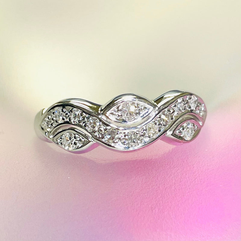 Vintage Single Cut Diamond Woven Ring Band Size 9