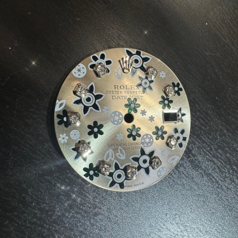 Green Floral Flower Diamond Dial for 36mm Yellow Gold DateJust Rolex Watch