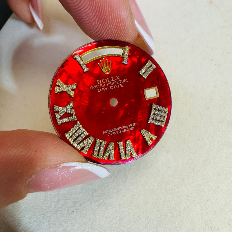 Spectacular Red Mother of Pearl Diamond Roman Numeral Dial for DayDate Rolex Watch