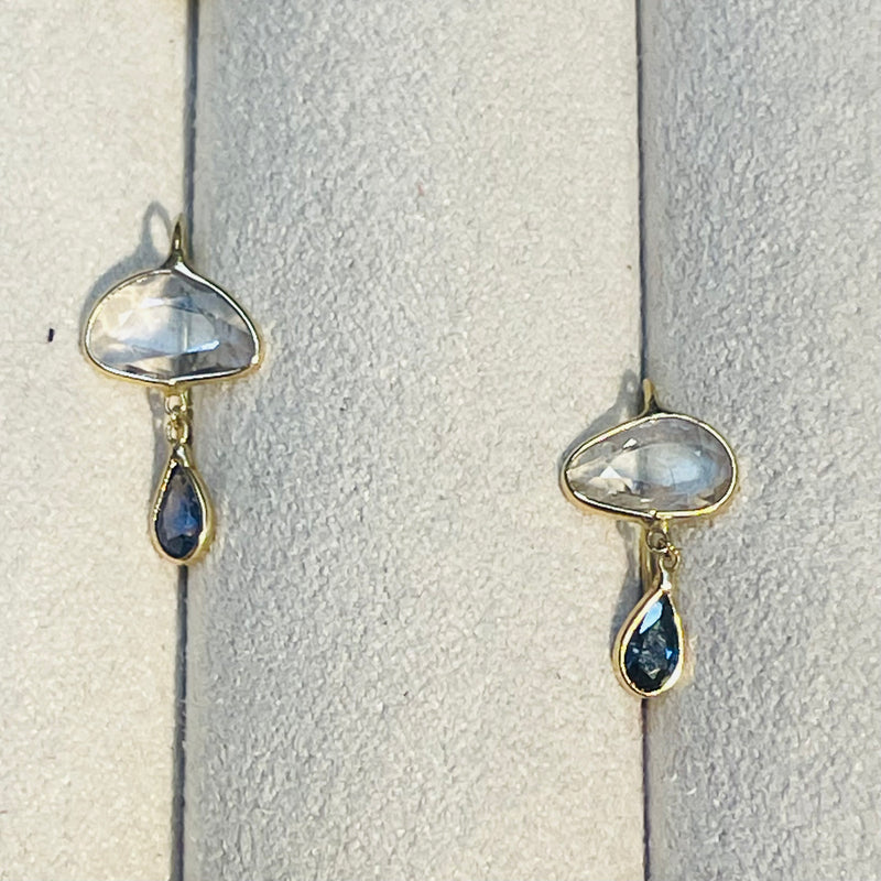 White and Blue Sapphire Rain Cloud 14K Yellow Gold Drop Earrings Sale price$745.00