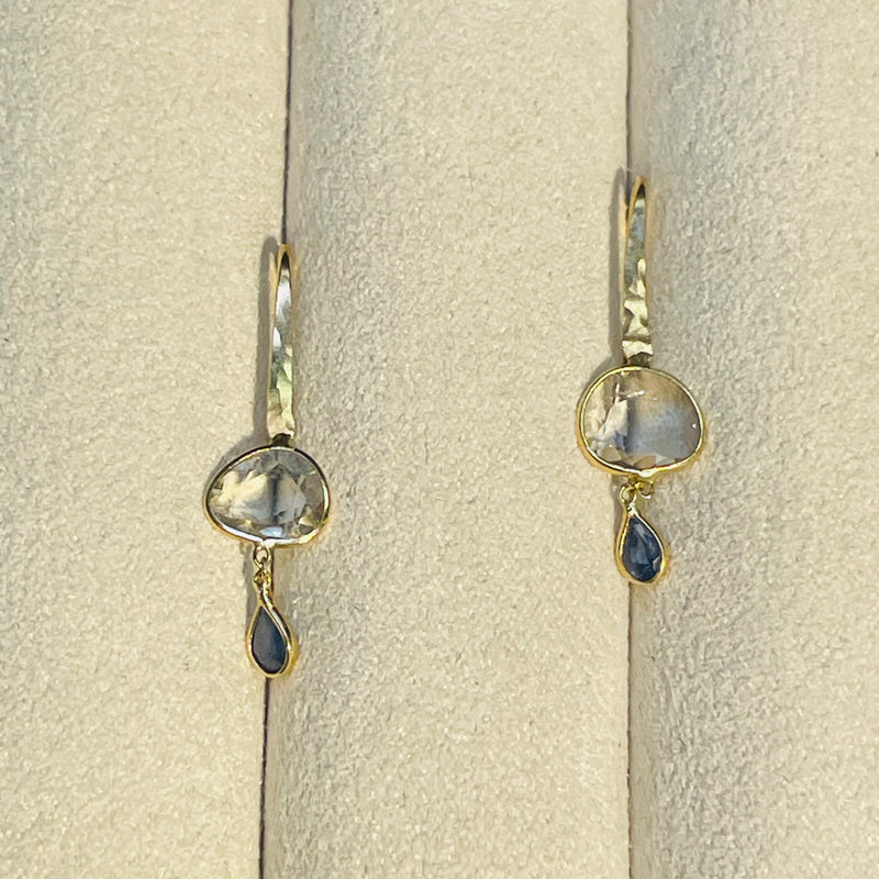 White and Blue Sapphire Rain Cloud 14K Yellow Gold Drop Earrings Sale price$795.00